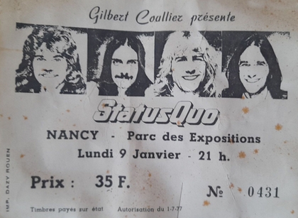 Mon premier concert du Quo en 1978. Par contre là je pensais qu'il y avait plus de monde. C'est mon frère qui m'avait fait la surprise en m'achetant le billet et m'a conduit jusqu'à Nancy. Quelle claque que j'ai reçue quand je les ai vus et surtout entendus la première fois. Je dis pas que maintenant c'est de la routine, mais la première fois reste la première fois. (Christian)