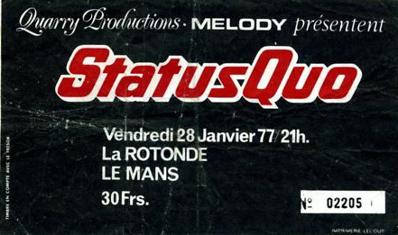 Premier concert de Status Quo dans la ville du Mans, le groupe y reviendra quatre ans plus tard, toujours dans la même salle. Un vrai succès populaire regroupant 3.000 personnes.